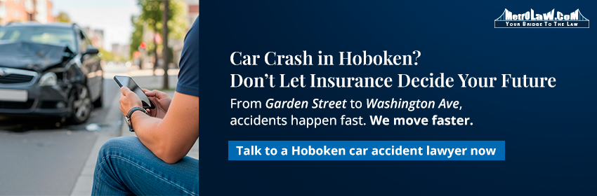 If a car accident in Hoboken left you injured or unsure what to do next, call Metro Law at 973-344-6587 to talk to our car accident lawyer and get clear guidance on your options.