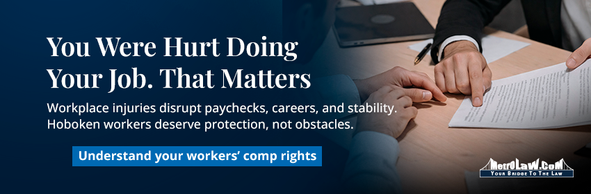 Injured on the job in Hoboken? Workers’ compensation rules can be confusing, but you don’t have to figure them out alone. Call Metro Law at 973-344-6587 or click here to get clear answers and protect your benefits.
