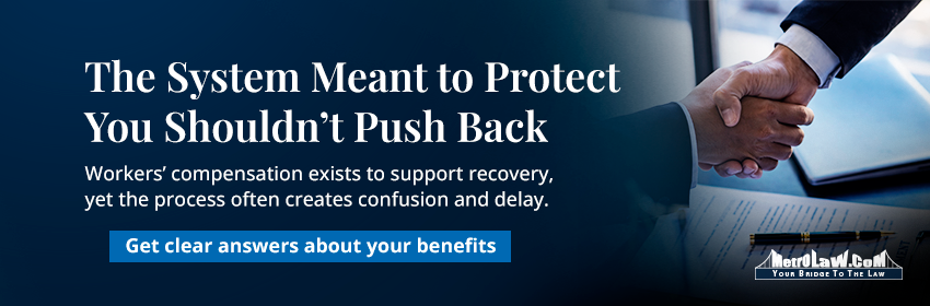 Metro Law represents injured workers throughout New Jersey, helping employees secure benefits, challenge denials, and protect their rights when insurers or employers push back. Understanding how workers’ compensation works can make a major difference in your recovery and financial stability.